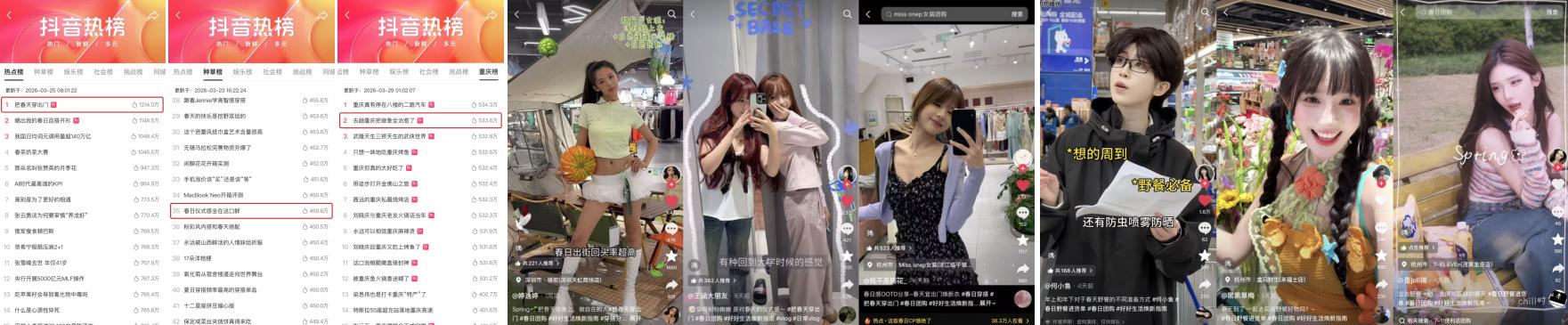 演绎人可轻松复刻的春天日常。她用实正在安利、分享的口气,「穿一身春日明丽」换上轻巧春拆取精美配饰,吸引大量用户跟从孔雪儿打卡同款春日霎时。搭配平台专属团购优惠,抖音糊口办事为用户预备了大额春日优惠券包,CP套餐可享平台专属优惠,美甲、护肤、新发色,抖音糊口办事将分歧的春日糊口场景连系起来,#去趟沉庆把怠倦全治愈了 登上种草榜TOP5、沉庆同城热榜TOP2;组合消费上线便收成用户喜爱,「尝一口春日美味」把时令春菜、限制美食奉上餐桌,枝头新绿,收成春日欣喜。